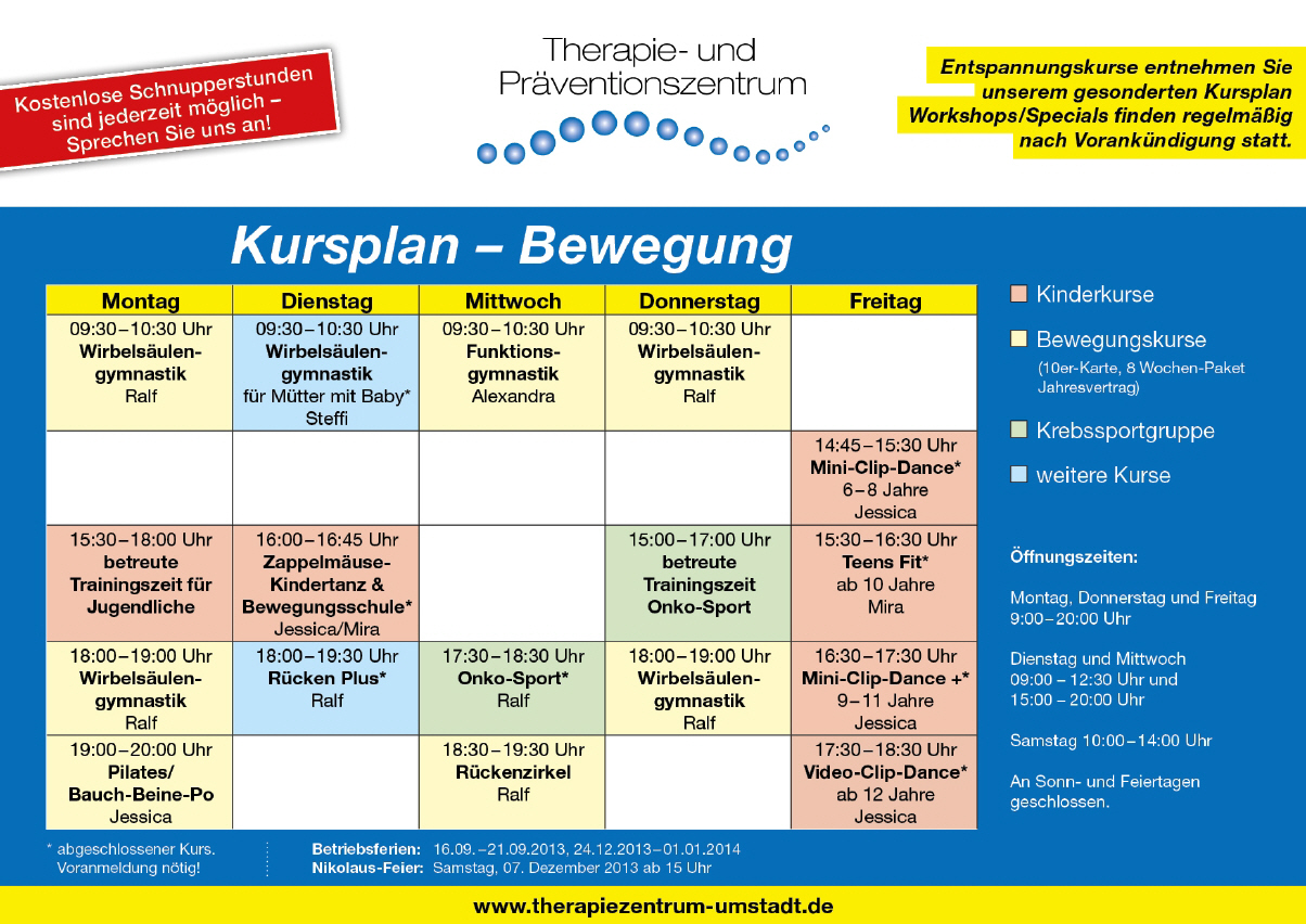 Kostenlose Schnupperkurse:Gerne können Sie unverbindlich an einem unserer Kurse teilnehmen.
